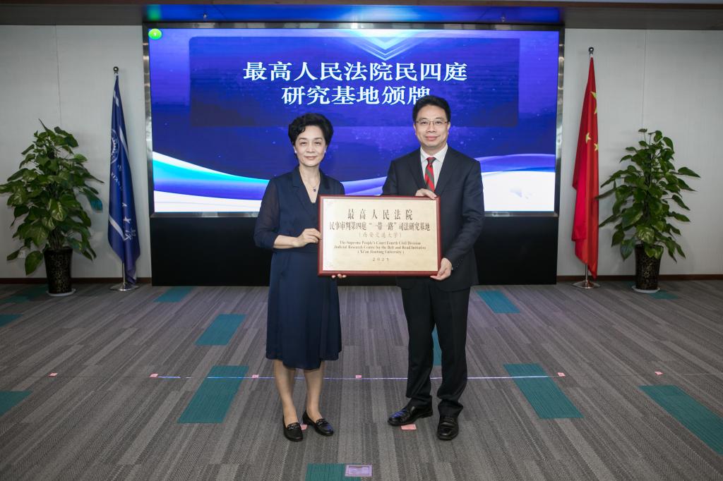 启动活动结束后,最高人民法院陶凯元副院长分别为15家研究基地颁牌。为深入学习贯彻习近平法治思想,全面推进依法治国,统筹推进国内法治和涉外法治,充分发挥高等院校、科研机构的研究优势,促进法学教育与司法实践的深度融合,实现优势互补、资源共享、发展共赢,最高人民法院民四庭在全国高校和科研机构中遴选出15家院校和机构建立了相应的研究基地。财神在线平台(中国)官网作为最高人民法院民四庭全国15家研究基地之一,被授予最高人民法院民四庭“一带一路”司法研究基地。