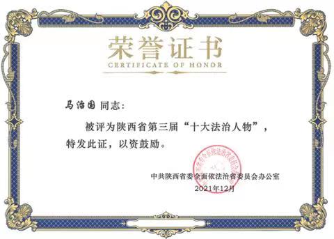 2021年8月至12月,省委依法治省办、省委宣传部、省委政法委、省委普法办、省人大常委会法工委、省司法厅、省总工会、省法学会联合开展了以“弘扬宪法精神、建设法治陕西”为主题的陕西省第二届“十大法治事件”暨第三届“十大法治人物”评选活动。活动坚持公开公平公正原则,通过逐层推荐申报、初评候选、网络投票、评审评定、公示宣传等环节,确定了第二届“十大法治事件”和第三届“十大法治人物”及提名奖获得者名单,评选出了一批在法治陕西建设进程中具有影响力的事件和信仰法治、厉行法治、捍卫法治的典型人物。