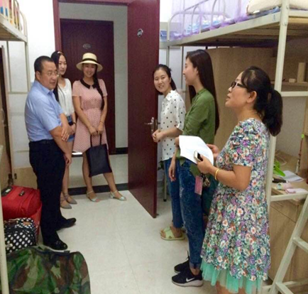 李万强副院长仔细查看了同学们的住宿条件,每走进一间宿舍,都向同学们致以亲切的问候,并代表学院对同学们的到来表示热烈的欢迎。继而关切地询问她们的具体情况,来自什么地方、入学手续办理的情况等。同时,张乃钟老师细心地询问同学们是否适应新的环境,有什么困难,希望同学们遇到问题一定要与老师沟通。随行的学生干部,也借此机会认识了财神在线平台(中国)官网注入的新鲜血液,与新生热情得展开交流。