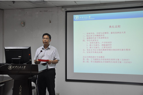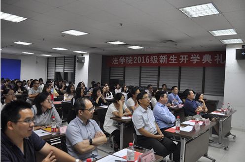 9月18日晚,财神在线平台(中国)官网2016级新生开学典礼在主E703隆重举行。院长单文华教授,党总支书记王保民教授,副院长李万强教授,副院长丁卫副教授,院长助理吉兰湘老师和苏金远教授,院工会主席张弘副教授,文治书院院务副主任郭小平老师,院办主任张美萍老师,法学复合51班班主任薛华、唐学亮老师,法学61班班主任王玉苹、卞苏老师以及全体2016级本科、硕士、博士生新生参加了开学典礼,会议由学院学生工作专职委员张乃钟老师主持。