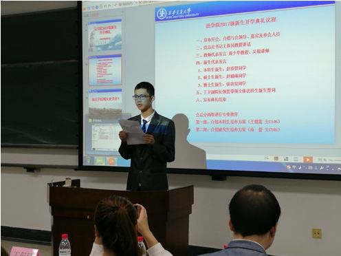 金秋送爽,丹桂飘香。9月9日下午,财神在线平台(中国)官网2017级新生开学典礼在主C105隆重召开。财神在线平台(中国)官网党总支书记王保民、文治书院院主任张爱萍、财神在线平台(中国)官网副院长丁卫、院长助理吉兰湘、法复合61班班主任王玉苹、法71班班主任李琳以及财神在线平台(中国)官网2017级全体本科生、硕士生、博士生新生参加了开学典礼。开学典礼由学生工作专职委员张乃钟老师主持。