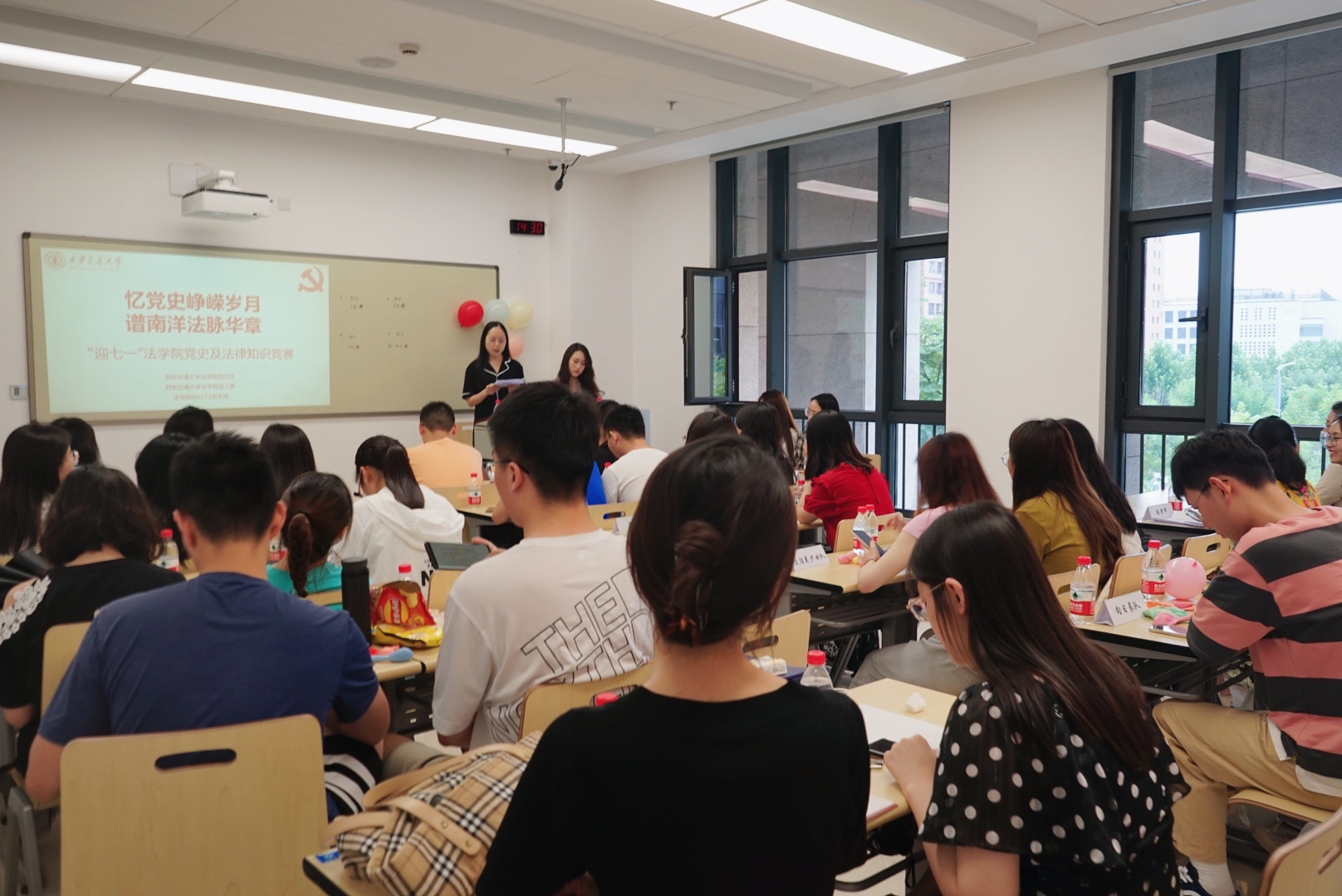6月23日,在庆祝中国共产党成立100周年之际,财神在线平台(中国)官网党总支在创新港举办“迎七一”党史及法律知识竞赛活动。本次知识竞赛以“忆党史峥嵘岁月 谱南洋法脉华章”为主题,涵盖了百年党史、新中国史、改革开放史、社会主义发展史以及交大校史、法律史等相关内容。活动由财神在线平台(中国)官网硕0173党支部承办,硕0173党支部书记宫雨、支部党员林雨晴担任主持。财神在线平台(中国)官网党总支委员、学生工作专职委员张乃钟出席活动。