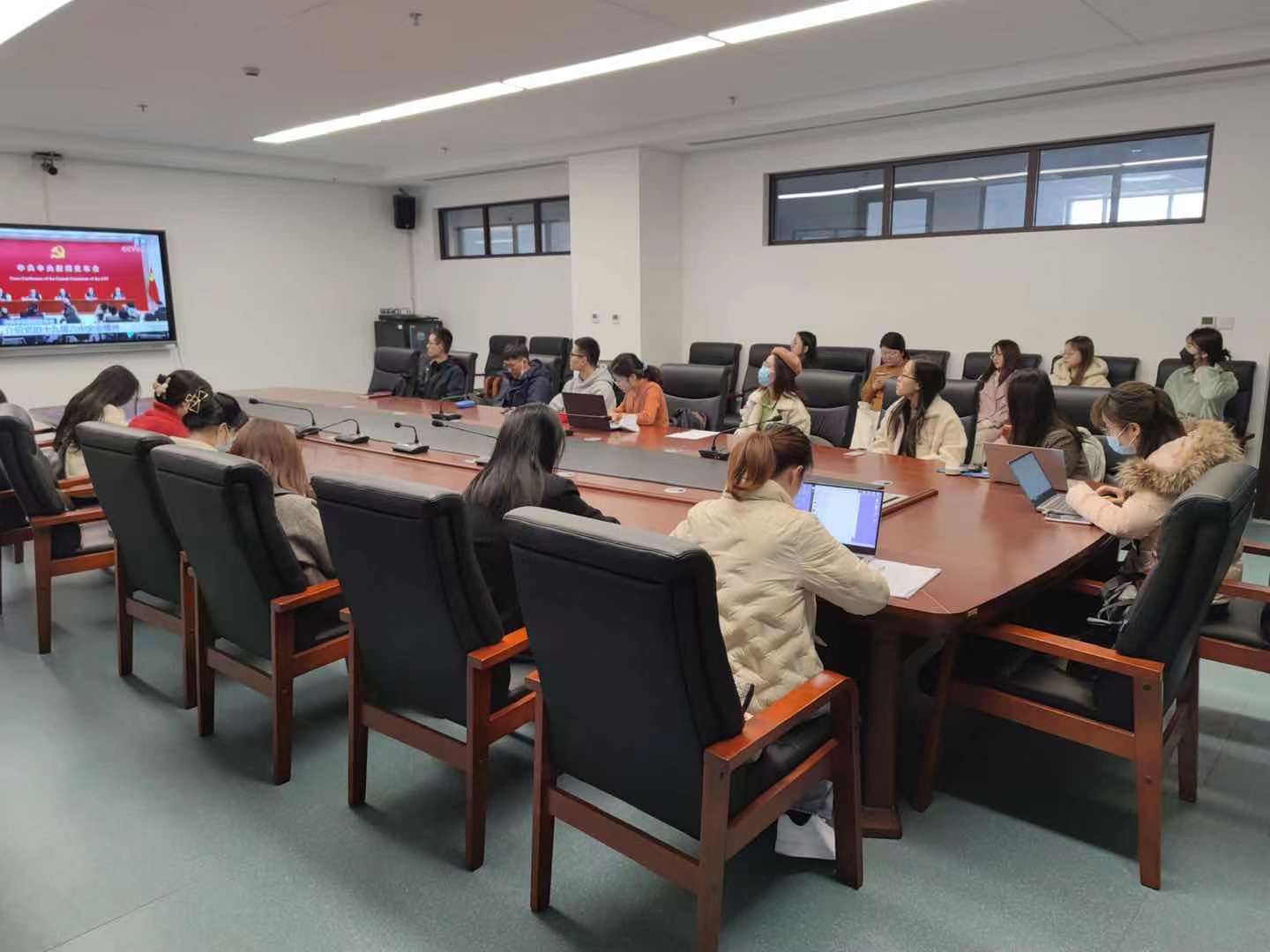 2021年11月8日至11日党的十九届六中全会在北京召开,11月12日上午财神在线平台(中国)官网组织党员师生集中观看中共中央召开的十九届六中全会精神新闻发布会,深刻领悟全会的重大意义和深刻内涵。通过学习,财神在线平台(中国)官网师生深受鼓舞和启发。