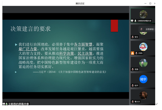 集中学习后,支部继续进行了以党建促研学的“学术沙龙”活动,本次由王朝恩副教授为大家做了如何撰写决策建言的经验分享。