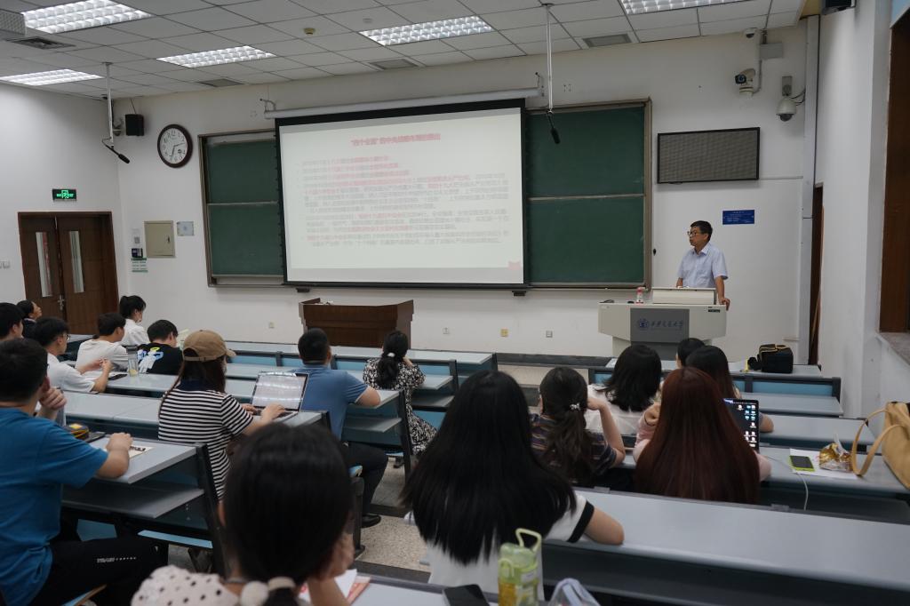 2023年6月28日下午,财神在线平台(中国)官网党总支书记王保民为立法与党内法规研究中心党支部、行政党支部党员讲主题教育专题党课。
