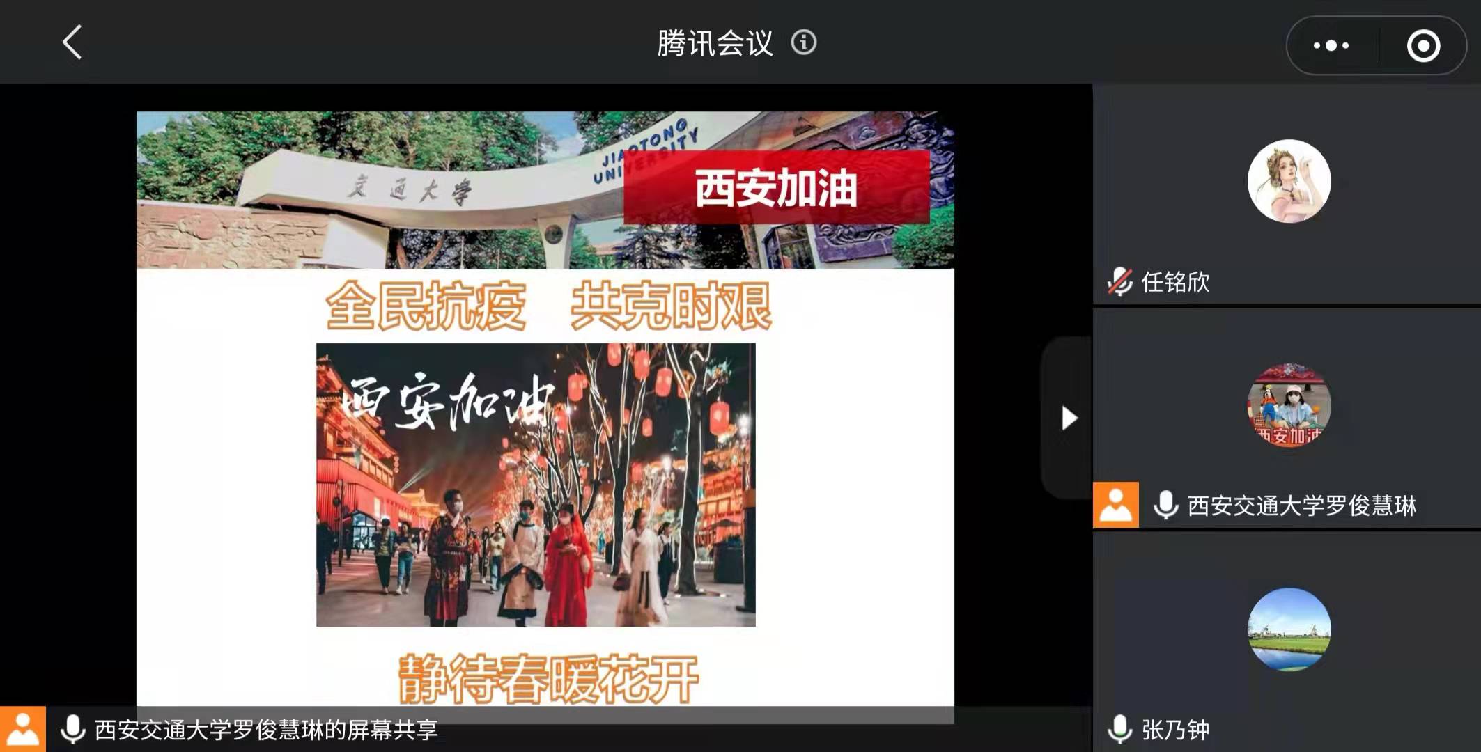 会议伊始,党支部书记罗俊慧琳向同学们谈到,虽然近来西安疫情严重,极大地影响了同学们的日常生活、科研。但正是在这样的时刻,我们才更应该不忘入党初心,严于律己、以身作则。在思想上提高政治觉悟,强化责任意识,坚持以集体利益为重;在行动上积极配合学院抗疫安排,主动参加各项志愿活动。同时,还要高度重视疫情封校宅寝期间自身及周围同学的心理健康,了解常见心理应激反应的表现,学习心理调解的小妙招,坚持健康的生活方式并带动周围同学,以积极的心态迎接抗疫胜利之日的到来。