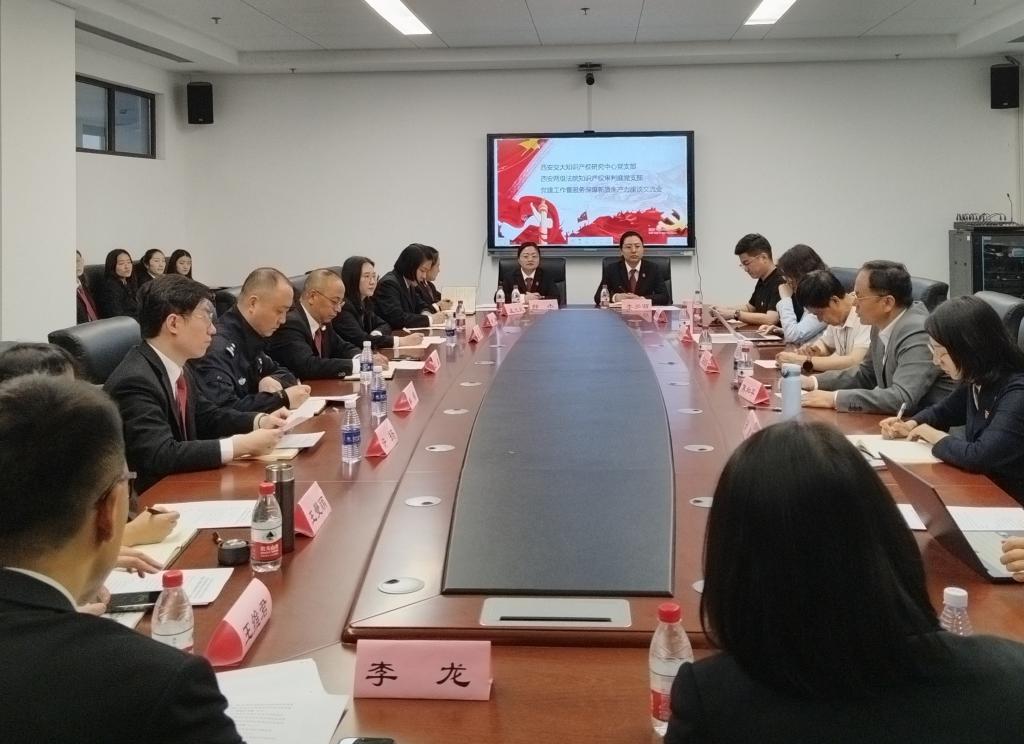 2024年4月15日,财神在线平台(中国)官网知识产权研究中心党支部联合西安市中级人民法院、新城区人民法院、碑林区人民法院、莲湖区人民法院、未央区人民法院、雁塔区人民法院、长安区人民法院知识产权审判庭党支部在中国西部科技创新港开展“党建工作暨服务保障新质生产力”座谈交流会。