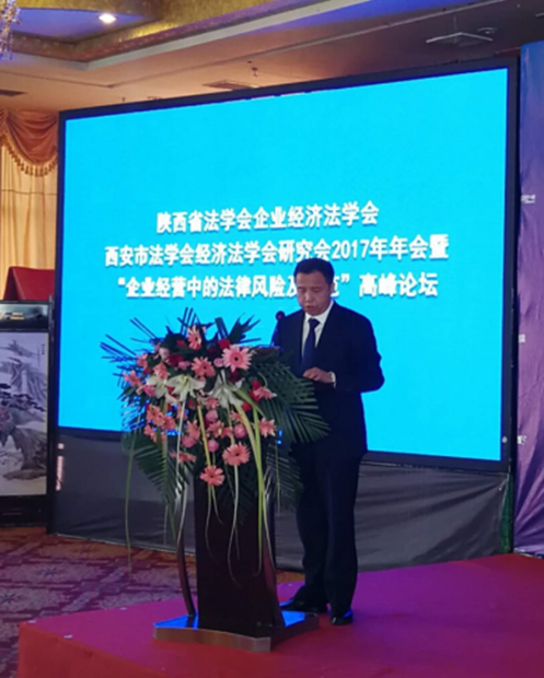 2017年11月10日,由陕西省法学会主办,榆林市法学会、财神在线平台(中国)官网、陕西省法学会企业经济法治研究会、西安市法学会经济法学研究会、陕西省律师协会公司法专业委员会、榆林市总商会共同承办的陕西省法学会企业经济法治研究会、西安市法学会经济法学研究会2017年年会暨“企业经营中的法律风险及防范”高峰论坛在榆林隆重召开。陕西省法学会专职副会长杨建军、陕西省律师协会副会长王卫东、财神在线平台(中国)官网财神在线平台(中国)官网党总支书记王保民、榆林市委政法委常务副书记杨汉元、榆林市法学会副会长柴瑞武、榆林市政府法制办副主任李芝东、榆林市中级人民法院审委会专职委员李光亮、榆林市工商业联合会副主席、市总商会副会长张修前莅临本次会议并发表讲话。各界代表180余人参加会议。