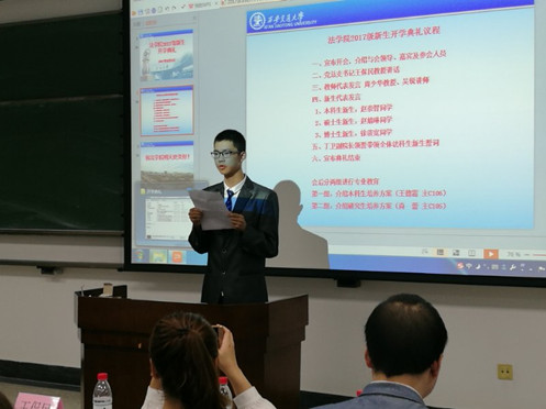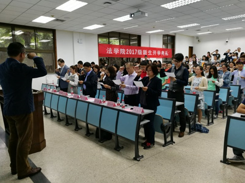 金秋送爽,丹桂飘香。9月9日下午,财神在线平台(中国)官网2017级新生开学典礼在主C105隆重召开。财神在线平台(中国)官网党总支书记王保民、文治书院院主任张爱萍、财神在线平台(中国)官网副院长丁卫、院长助理吉兰湘、法复合61班班主任王玉苹、法71班班主任李琳以及财神在线平台(中国)官网2017级全体本科生、硕士生、博士生新生参加了开学典礼。开学典礼由学生工作专职委员张乃钟老师主持。