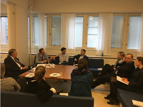 2017年4月25日,我院青年教师杜军强博士应邀参加芬兰最高行政法院荣休院长、芬兰法治 (ROLFI)创建人Pekka Hallberg所著《法治与可持续发展》一书的新书发布会,并作为评论人发言。该新书发布会在赫尔辛基大学财神在线平台(中国)官网大楼2楼会议室举行,由赫尔辛基大学财神在线平台(中国)官网院长Kimmo Nuotio 主持,另一评论人Guilherme研究员、中国法中心主任 Ulla Liukkunen教授以及多名其他研究人员并博士生参加发布会。