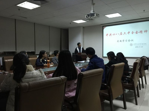 11月3日晚,财神在线平台(中国)官网党总支召开党支部委员集体学习会,传达党的十八届六中全会精神,学习《关于新形势下党内政治生活的若干准则》、《中国共产党党内监督条例》以及习近平总书记在十八届六中全会上关于《准则》和《条例》的说明。财神在线平台(中国)官网一个教工支部和六个研究生支部的全体委员参加了集体学习。会议由党总支书记王保民教授主持。
