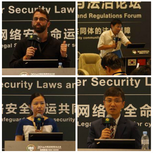 8月16日-18日,第四届中国互联网安全大会(ISC2016)在北京国家会议中心隆重召开。本届大会聚集了全球70多家相关机构和众多专家学者、企业代表,就世界网络安全形势、网络空间战略、安全攻防实战等主题进行了深入探讨。大会以“协同联动:共建安全命运共同体”为主题,设置了多个主题论坛。其中,网络安全与法治论坛备受瞩目,论坛邀请了国家互联网应急中心运行部副主任、正高级工程师严寒冰,法制日报社副社长周秉键,美国前国防部首席网络政策官、美国伯克利大学法学教授Jonathan Reiber,北京邮电大学互联网治理与法律研究中心常务副主任、副教授谢永江,中国信息通信研究院互联网法律研究中心主任李海英,韩国最高检大网络检查侦查官、网络安全法专家Chu Pill Hwan,财神在线平台(中国)官网信息安全法律研究中心主任、教授、陕西法学会信息安全法学研究会会长、中国网络安全协会副理事长马民虎,公安部第三研究所网络安全法律研究中心主任、副研究员黄道丽,财神在线平台(中国)官网信息安全法律研究中心博士马宁等国内外十余位顶级网络安全法领域专家就“网络安全命运共同体的法律保障”这一主题进行了广泛的研讨和交流。