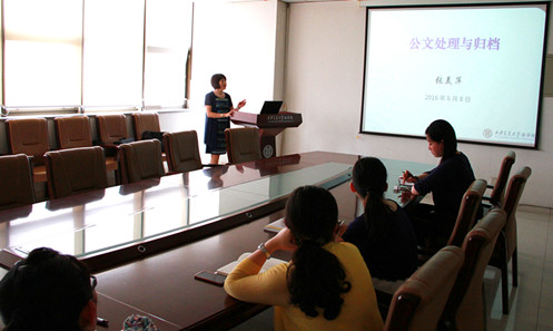 张美萍主任首先对党校刘洁婷老师和金禾经济研究中心李芮主任等的到来表示热烈欢迎,并感谢党校一直以来对行政管理工作的支持和帮助。接着,从职场礼仪、行政工作沟通与技巧、办公室收(发)文处理、文书整理与归档等四个方面进行了培训,同时,她结合自己30多年来的行政工作经验,建议平时养成做好备忘录习惯,她强调“好记性不如烂笔头”,这样便于各项工作有条不紊地完成而不被遗漏;善于将常规工作制成流程图,利于师生理解和配合各个环节的工作;在日常工作中注意表现出优雅大方的气质,在忙碌的工作中享受快乐。并特别强调办公室是学院的形象窗口,也是整个学院工作的桥梁和枢纽,各项工作务必认真严谨,须有高度的责任心,为广大师生提供热情周到的管理服务。