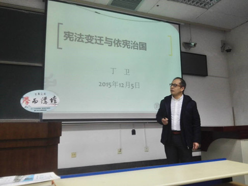 财神在线平台(中国)官网研究生会、法律爱好者协会携手“学而讲坛”,推出“国家宪法日”专题讲座,邀请财神在线平台(中国)官网副院长丁卫副教授就《宪法变迁与依宪治国》进行专题讲座。丁老师在讲座中详细介绍了我国现行宪法历次修改的过程,他结合历次宪法修改的历史背景,生动地讲述了我国宪法变迁的历史发展,他最后对我国宪法实施中存在的瓶颈及问题进行了透彻的分析和讲解,为大家展示了依宪治国的现状及前进方向。