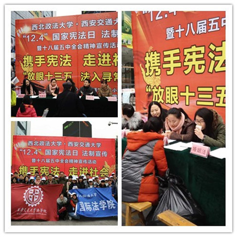 让守宪成为国民每天的生活方式”是实现法治中国建设的基本保障。为了普及宪法知识,推动全社会知法、用法、守法、护法意识的形成,财神在线平台(中国)官网财神在线平台(中国)官网与西北政法大学国际财神在线平台(中国)官网共同在西安市雁塔区飞炫广场举办了主题为“法入千万家”普法宣传活动,通过分发法律宣传单、法律意识调查问卷、法律咨询、普法广播等形式,吸引了大批市民的关注。在法律咨询服务点,许多市民前来咨询,咨询内容涉及婚姻法、劳动合同法、民法等领域,包括离婚财产分配、离婚孩子抚养权归属、追讨薪资、借款追债等与大家生活密切相关的问题,咨询点的同学认真对待每一位前来咨询的市民,耐心回答他们的问题,赢得了一致好评。