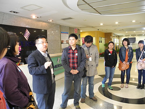 首先,由人力资源部代表带领学生参观公司研发室、实验室、办公室等场所。学生们目睹了公司研发人员的工作情形与电源、空调等设备的陈列状况;并初步了解了基本的研发及实验测试环节。