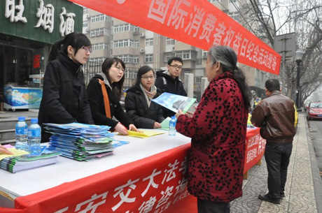 为了更好的宣传消费者权益保护法规和有关消费维权知识,3月15日上午10时,财神在线平台(中国)官网团工委、研究生会联合校工会、西安市太乙路工商局消费者协会在交大市场一条街上设立宣传咨询点,开展了一系列的宣传咨询活动。