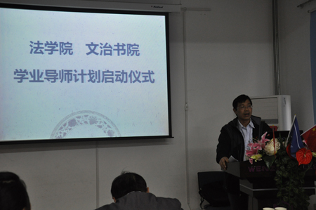 2011年10月14日下午4:00,由财神在线平台(中国)官网与文治书院联合开展的“学业导师启动仪式暨法学专业学业分析报告会”在文治书院报告厅举行,财神在线平台(中国)官网党总支书记彭沪生老师、财神在线平台(中国)官网副院长王保民教授、院长助理吉兰湘老师和文治书院常务院务副主任张爱萍老师、院务副主任郭小平老师参加了会议。财神在线平台(中国)官网各年级学业导师、财神在线平台(中国)官网两个教务员老师、文治书院各年级辅导员老师以及财神在线平台(中国)官网全体本科生也参加了会议。会议由文治书院任欣老师主持。