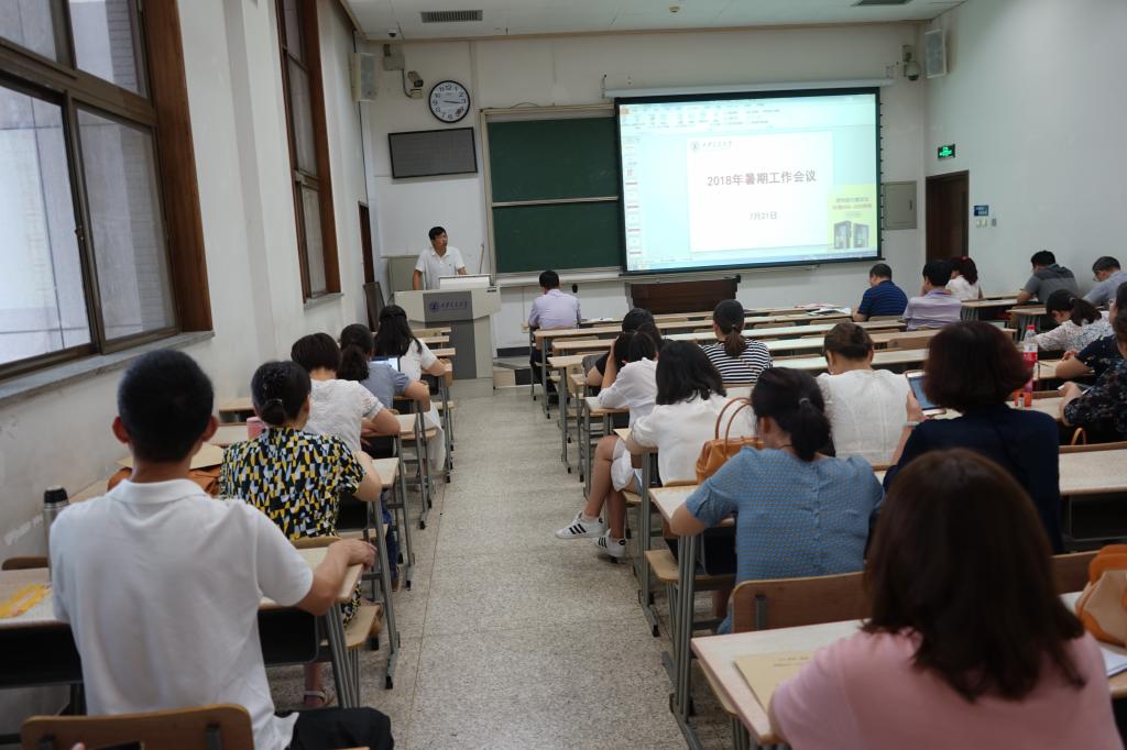 7月21日下午,财神在线平台(中国)官网召开全院教职工大会,传达落实学校暑期工作会会议精神,总结学院2018上半年工作并部署安排暑假及下半年的主要工作。财神在线平台(中国)官网领导班子成员及全体教职工参加了此次会议,会议由党总支书记王保民主持。
