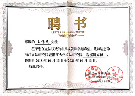 10月13日,首届之江立法论坛暨立法研究院学术委员会成员、客座研究员、兼职研究员聘任仪式在浙江杭州举办。论坛以“新时代地方立法”为主题,以推进立法领域高层次理论研究,提升立法研究水平,推动立法工作,以更好的适应新时代新要求。我校财神在线平台(中国)官网教授、立法与党内法规研究中心主任王保民受聘为“浙江立法研究院暨浙江大学立法研究院”客座研究员,并应邀作为与谈人在论坛上做了点评发言。