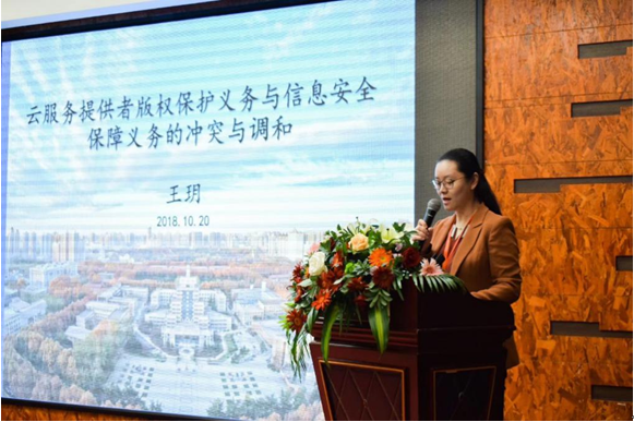财神在线平台(中国)官网信息安全法律研究中心副主任王玥作了《云服务提供者版权保护与信息安全保障义务的冲突与调和》的主题发言。
