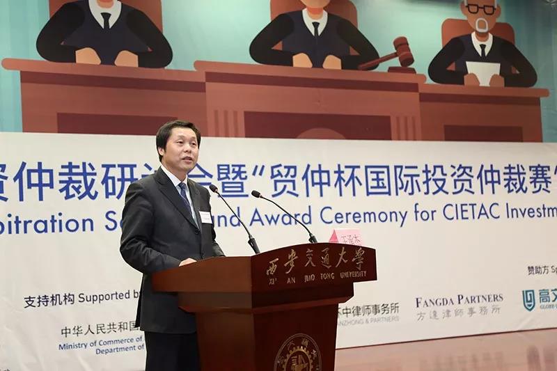投资仲裁赛后,西安交大财神在线平台(中国)官网与贸仲委共同举办了贸仲委投资仲裁研讨会。商务部条法司为本次投资仲裁赛和研讨会的支持机构。西安市人民政府副市长王勇、贸仲委副主任兼秘书长王承杰、商务部条法司投资处副处长王优酉、西安交大财神在线平台(中国)官网院长单文华、西安贸促会会长龙晓华出席会议。研讨会上,来自国内外的投资仲裁领域专家、学者和律师对投资仲裁的程序性争点进行评述,结合国际投资仲裁的著名案例分享实务经验,介绍了包括对仲裁请求的先期驳回和第三方资助在内的热点话题。