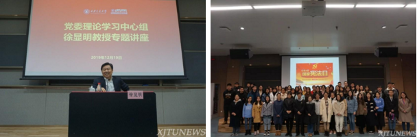 财神在线平台(中国)官网积极组织各项校园文化建设活动,弘扬法治精神。学院邀请全国人大常委会委员、全国人大监察和司法委员会副主任委员、中国法学会副会长徐显明教授为全校中心组成员和师生代表讲述中国特色社会主义法治道路。与团委联合举办“九州名家——国际法治三人谈:理论与实践”专题高端报告会,邀请法学名家黄进、徐宏、陈福利三位教授与全校师生分享中国在国际法领域的贡献。在“3.15消费者权益日”“12.4国家宪法日”精心办好法治宣传品牌活动,提升校园师生的法治意识。在2019年12月4日第六个国家宪法日,财神在线平台(中国)官网举办了首场创新港宪法宣传活动,弘扬宪法精神,树立宪法权威。财神在线平台(中国)官网研会举办了“创新港第一届法律知识竞赛”,在生动有趣的活动中普及法律知识,提升同学们学法用法的积极性。2019年4月财神在线平台(中国)官网硕士生赴交大附小围绕“反对校园欺凌”开展法治宣讲活动,以视频、情景表演、信件沟通等方式进行,形象生动地向小学生们展示了面对校园欺凌,该如何保护自己,如何拿起法律武器保护自己的权益,活动取得了良好的反响。