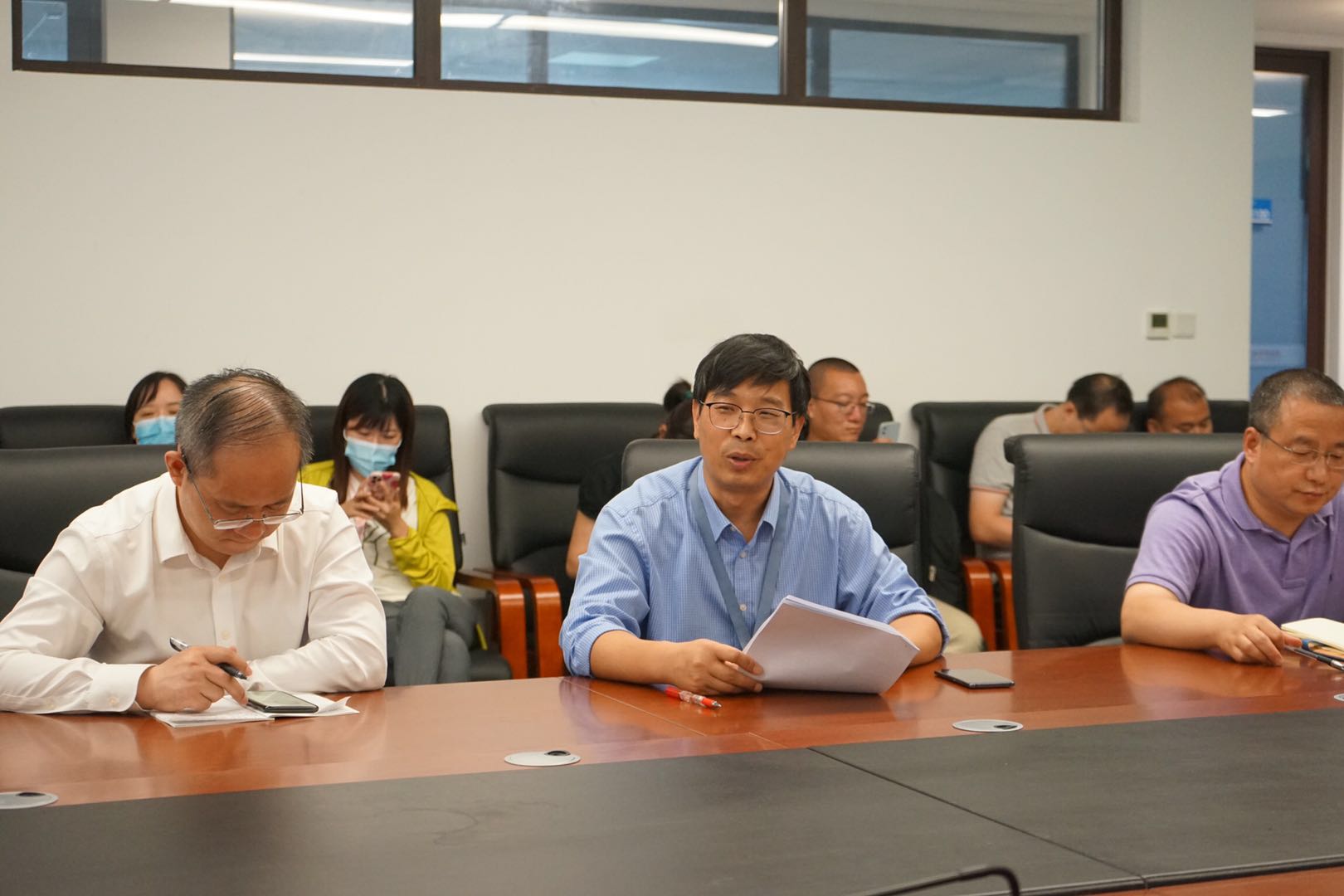 7月25日下午,财神在线平台(中国)官网在创新港涵英楼5-3079会议室召开全院教职工大会,传达落实学校暑期工作会会议精神,围绕“办好‘科创月’,挺进‘十四五’”的主题研究部署学院下半年主要工作。财神在线平台(中国)官网领导班子成员及全体教职工参加了此次会议,会议由党总支书记王保民主持。