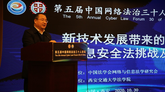 中国法学会网络与信息法学研究会负责人、中国社科院法学所副所长周汉华研究员在致辞中指出,网络法治30人论坛自2016年设立以来,在中国社科院法学所、华东政法大学、中南大学、财神在线平台(中国)官网、中国信息通信研究院、西南政法大学、暨南大学等成员单位的支持下,从北京、上海、长沙、重庆,一路来到古老而又充满青春活力的古都西安。一路走来,论坛的队伍越来越大,朋友越来越多,覆盖的议题越来越广泛,讨论的水平越来越高,活动与成果的影响力越来越大。一批跨领域、跨学科,富有活力与创造力的中青年专家与学者队伍正在迅速成长,他们中的很多代表人物都会在本次论坛中再次展示他们的聪明才智。网络信息法面临的从来都是难点、热点和焦点问题,这在传统教科书中没有答案,需要创新、创造。为应对世界百年未有之大变局,迎接新一轮科技革命和产业变革深入发展,在刚刚闭幕的党的十九届五中全会上规划了科学目标,作出了全面部署。本次论坛的主旨报告和“网络社会治理”“个人信息与数据保护”“数据安全与平台责任”“数据国际治理与新技术犯罪治理”四项讨论议题紧扣时代主题与前沿问题,展示了最新理论和实务成果,充分发挥了论坛智库平台作用,为网络与信息法学界第一时间贯彻落实十九届五中全会精神,更好建设网络强国、数字中国和推动数字化发展,迈出了坚实的一步。