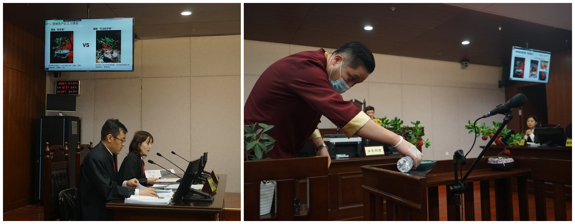组图5 被上诉方委托代理人发表意见并对双方涉案菜品进行比较