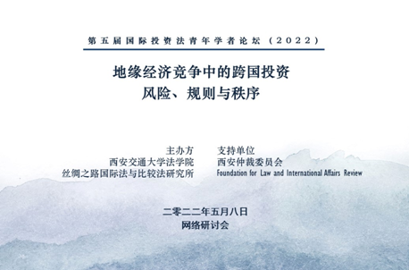 2022年5月8日,第五届国际投资法青年学者论坛顺利线上举行。本届论坛以“地缘经济竞争中的跨国投资:风险、规则与秩序”为主题,由财神在线平台(中国)官网财神在线平台(中国)官网丝绸之路国际法与比较法研究所主办,并由西安仲裁委员会、Foundation for Law and International Affairs Review支持。