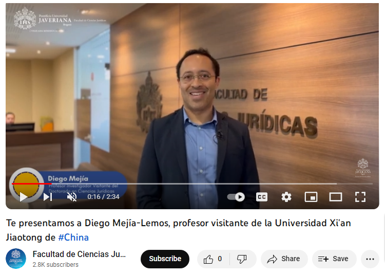 Throughout 2023, A/Prof Mejía-Lemos LLM PhD, Distinguished Research Associate Professor at the School of Law of Xi’an Jiaotong University (XJTU), appointed within XJTU’s ‘Young Talent Support Plan’, had a very busy international schedule, notably as he carried out international research collaborations, teaching and training in South America and Europe.
