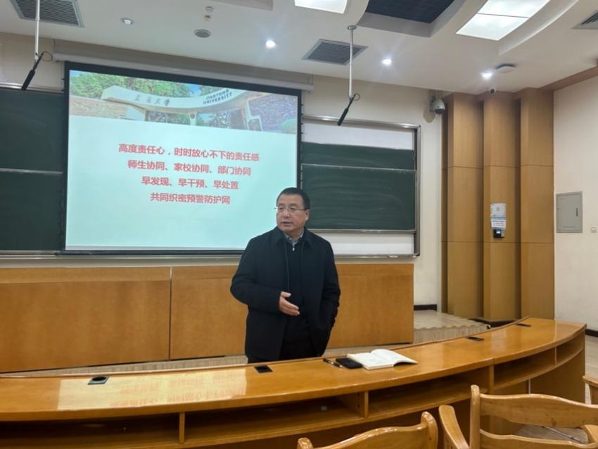 学生工作专职委员张乃钟老师汇报了财神在线平台(中国)官网在校研究生基本情况、思政工作队伍及思政教育情况,通过案例讲解面对突发危机事件的预防和处置。结合多年学生管理工作经验,给出研究生导师协同工作建议,倡导“师生协同、家校协同、部门协同,早发现、早干预,共织预警防护网”。