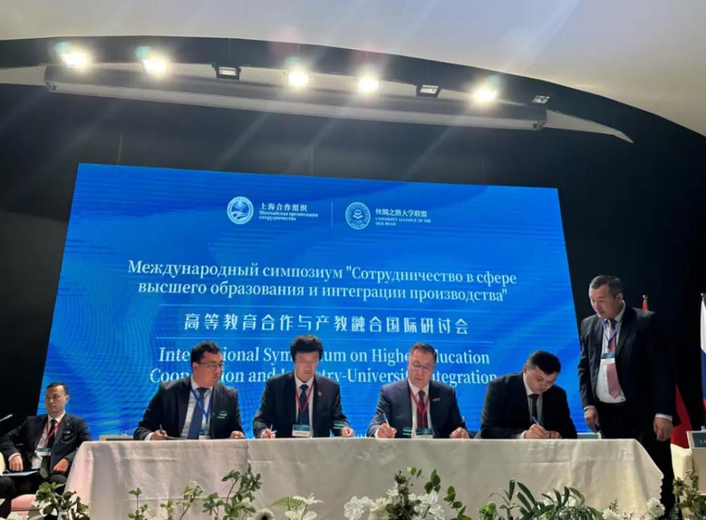 张立群代表“丝绸之路大学联盟”理事长单位、“丝绸之路大学联盟”秘书处单位向中哈两国教育部的大力支持,对与会单位的支持表示衷心感谢。他表示,11年前,中国国家主席习近平在哈萨克斯坦阿斯塔纳首次提出“丝绸之路经济带”倡议。今天,从倡议到行动,“一带一路”已经走过金色十年。在上海合作组织峰会举办期间这个特殊的历史时刻,在“丝绸之路大学联盟”框架下年度重要活动《上海合作组织高等教育合作成果集》发布会暨高等教育合作与产教融合国际研讨会的举办具有特殊的意义。这是各方精诚合作的成果,是“一带一路”倡议与上海合作组织区域性国际组织对接,在高等教育方面的具体实践。希望各方以“上海精神”和“丝绸之路精神”为引领,携手同行,为世界高等教育的交流合作、繁荣发展贡献更大的力量,共同擘画人类更加美好的未来。
