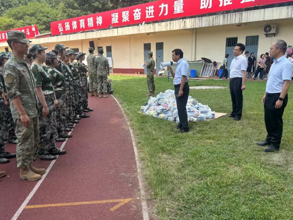之后,单文华院长、王保民书记和丁卫副院长一起为教官、指导员和同学们送上“慰问大礼包”,逐一将慰问品送到教官、指导员和同学们的手中,给炎炎夏日带来缕缕清凉。