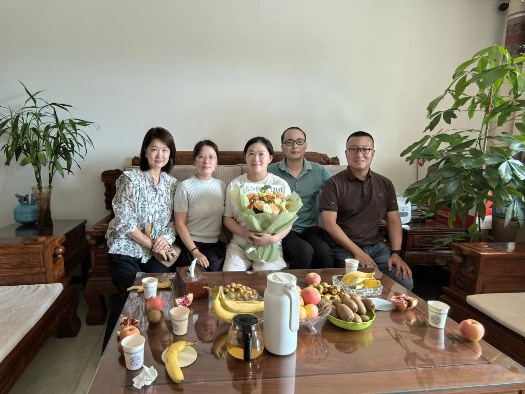 2024年9月10日教师节,财神在线平台(中国)官网工会代表慰问生育女教工李琳副教授和张隽岩老师,亲切送上领导的关怀、组织的温暖和同事们的祝福。工会主席吴锐、党政办主任郭庆、工会委员王新雷、谢毅娟四人参加活动。