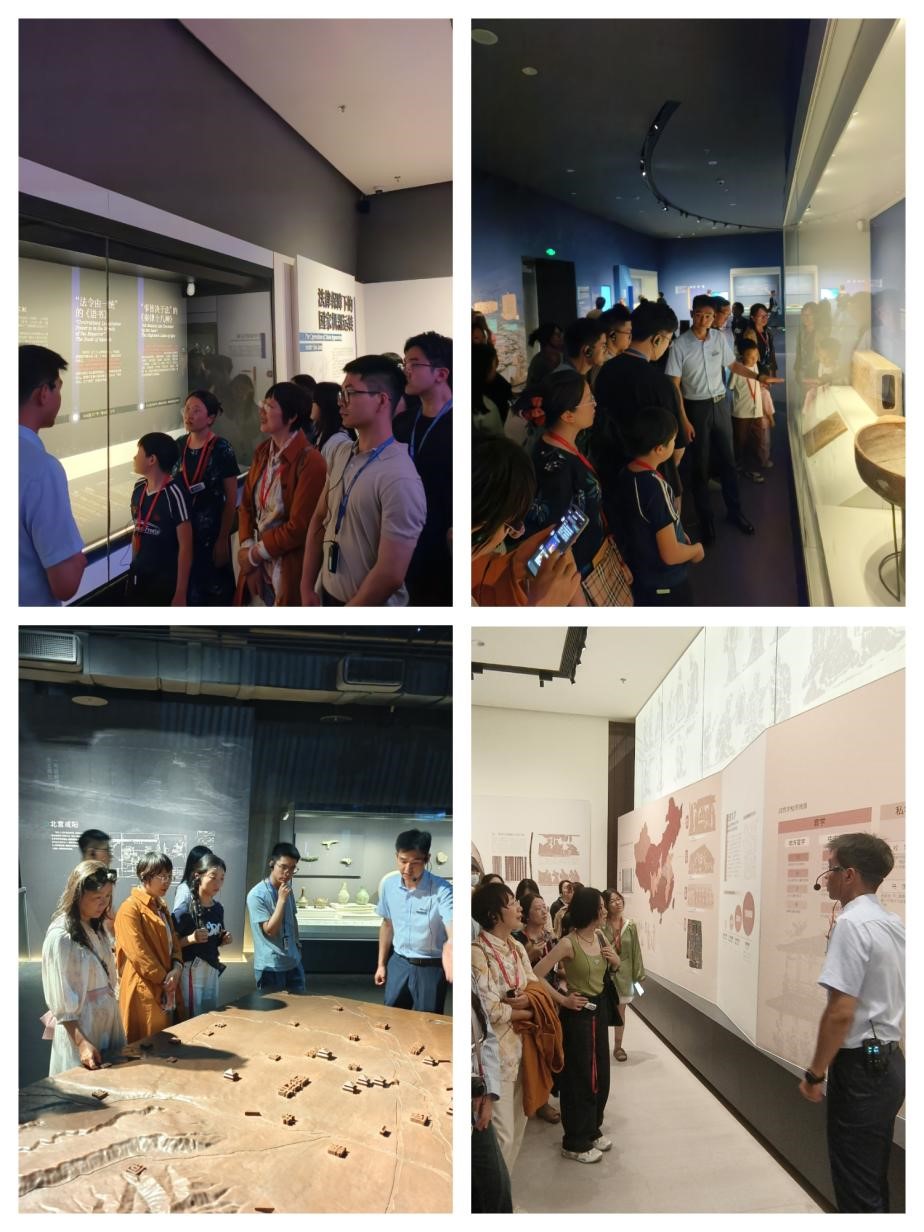 在核心展区,“高奴禾石”铜权与秦代竹简生动展现了秦朝“治道运行,皆有法式”的治国理念。这些珍贵文物让同学们直观感受到中国古代法律体系从条文制定到实践运作的完整过程,深刻体会到中华文明“以法为纲”的治理智慧对历史发展的深远影响。“丝路一号”汉代木船印证了丝绸之路作为“规则互认的文明对话之路”的历史定位。配合燕首铜壶的典雅纹饰、彩绘雁鱼铜灯的环保设计、鎏金铜蚕的丝路密码,同学们清晰感知到秦汉时期开放包容的文明特质。“城与陵”展厅以雍城、长安等都城遗址文物为依托,用陶壶、“汉并天下”瓦当等展品串联起秦汉都城规划理念,生动阐释了中国人“家国天下”的传统认同。此次沉浸式的教学,让文化遗产法不再是枯燥的书本知识,而是鲜活的文明记忆。