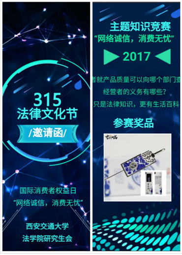 2017年3月15日,财神在线平台(中国)官网研究生会成功举办了第八届“春之声”法律文化节,本届法律文化节由上、中、下三个分场组成,分别为社区普法、法律讲座和知识竞赛,活动旨在进一步增强大学生和市民对网络消费的了解,提高消费者对网络消费的安全意识和维权意识。