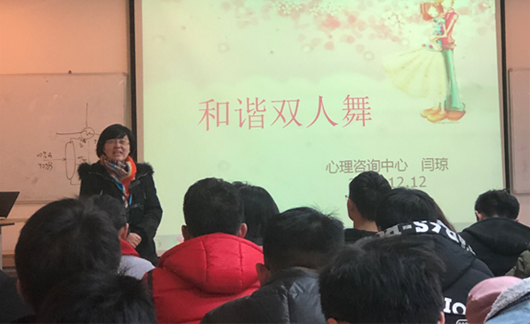 2018年12月12日晚上七点,化工学院与财神在线平台(中国)官网在化工学院106会议室开展了以“树立正确恋爱观”为主题的心理健康讲座活动。本次讲座由心理咨询中心的闫琼老师主讲,财神在线平台(中国)官网与化工学院的一年级研究生参与了此次讲座活动。