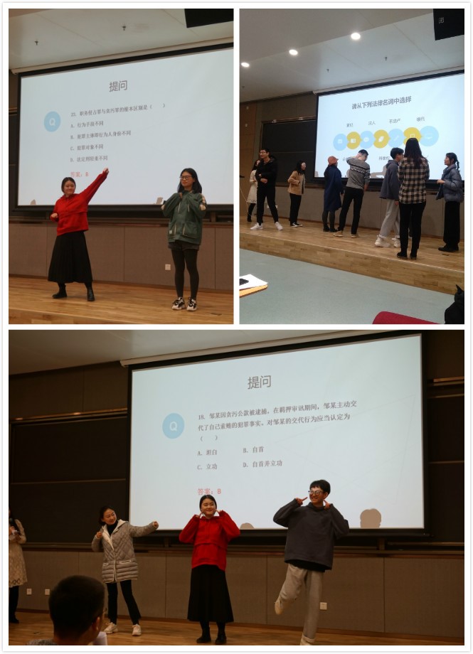 本次竞赛分为八个代表队,每队由三名选手组成。比赛分为四个环节,分别是:法律名词“蹲蹲蹲”、运气“碰碰碰”、法律概念“猜猜猜”以及决胜之战“抢抢抢”。 此次比赛涉及到的法律知识主要是与《宪法》《民法》《刑法》等法律法规相关的内容,目的在于提高同学们学法用法的积极性,让大家懂得在必要时用法律武器保护自己的切身利益。在整场比赛过程中,各组参赛选手都表现十分出色,现场气氛热烈,掌声不断。