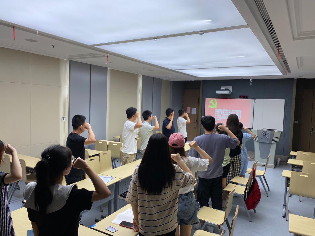 随后,两个支部的党员在组织委员的带领下重温入党誓词并集体庆祝政治生日。党支部为同志们准备了精美的生日贺卡,支部党员们也相互致以诚挚的祝福。
