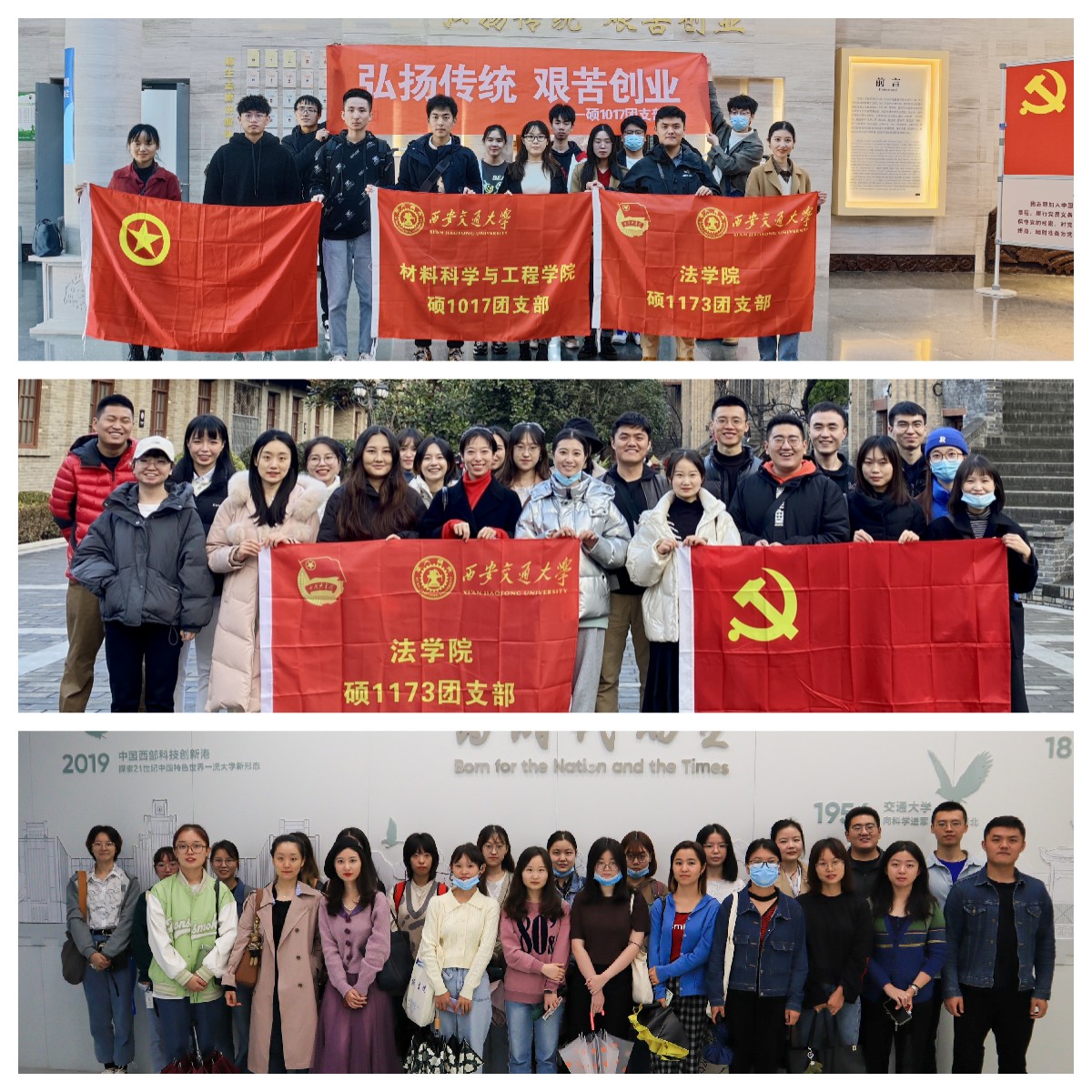 纸上得来终觉浅,绝知此事要躬行。硕1173团支部先后组织参观创新港科技展馆,了解“二次西迁”的历程和创新港发展的动态,提升同学们作为交大学子的自豪感;联合材料学院团支部,参观交大西迁博物馆,感受“西迁精神”的伟大,激发同学们爱国荣校的热情;纪念西安事变85周年,组织参观西安事变纪念馆,实地感受历史的沧桑,加深了党史学习的印象,体会到和平生活的珍贵。